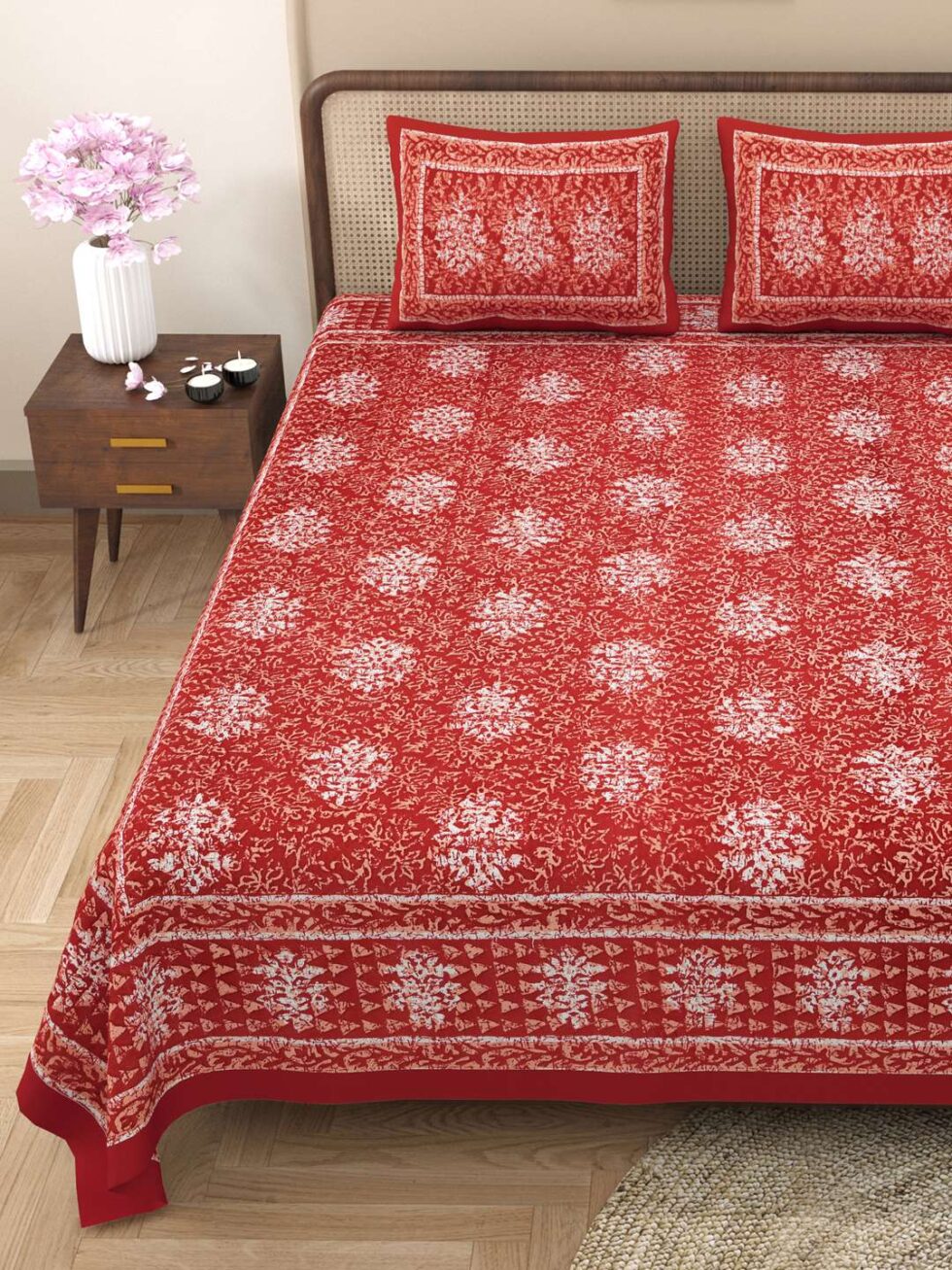 100% Pure Cotton Traditional Printed Bedsheet for Double Bed King Size Bedsheet with 2 Pillow Covers